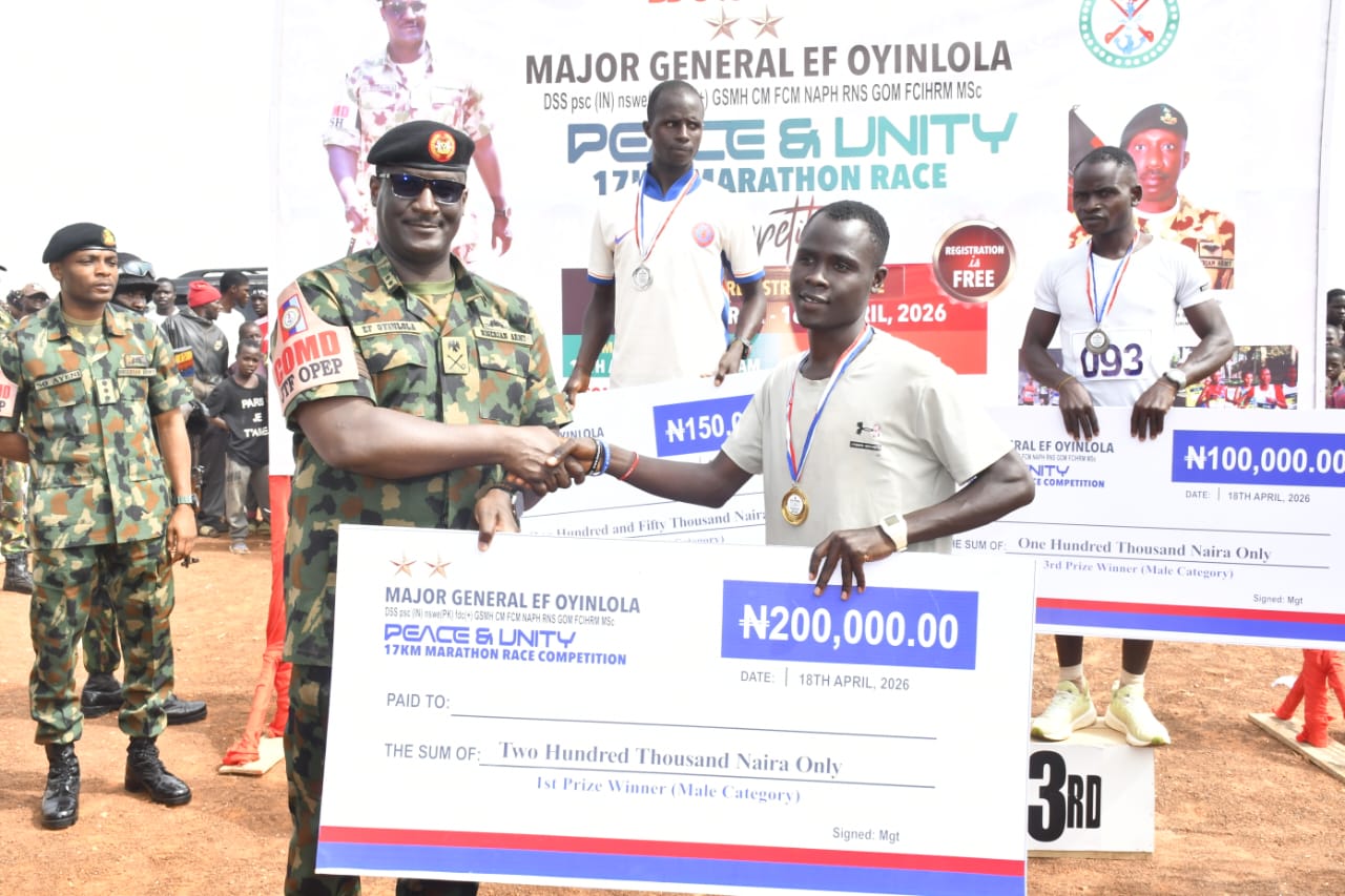 The General Officer Commanding (GOC) 3 Division and Commander of Operation ENDURING PEACE (COPEP), Major General Folusho Oyinlola, successfully hosted the first Peace and Unity Inter-Tribal 17-kilometre race in Mangu Local Government Area.